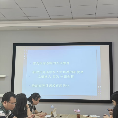 教研室主任王伟老师分享了四川外国语大学董事长董洪川教授、上海外国语大学副董事长查明建教授等我国知名专家学者的发言报告,其中提出英语专业建设必须明确学科性质、夯实学科内涵建设,按照外语学科五大学科方向建立起比较完善的知识体系、学术体系、话语体系和人才培养体系。王伟老师指出专家们的报告对于本专业人才培养方案的修订具有重要指导意义。